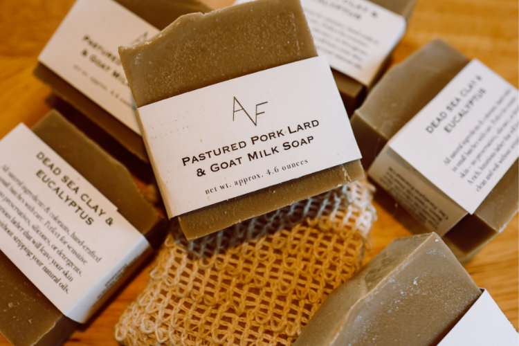 Ayers Valley Farm Pastured Pork Lard & Goat Milk Soap is made of all natural ingredients & colorants, hand-crafted in small batches with care. Perfect for sensitive skin - no preservatives, silicones, or detergents.