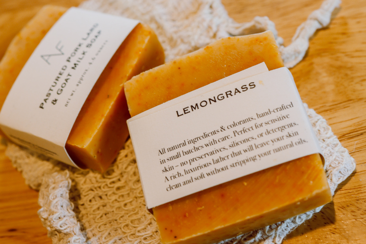 Ayers Valley Farm Pastured Pork Lard & Goat Milk Soap is made of all natural ingredients & colorants, hand-crafted in small batches with care. Perfect for sensitive skin - no preservatives, silicones, or detergents.