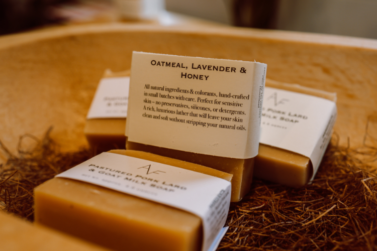 Ayers Valley Farm Pastured Pork Lard & Goat Milk Soap is made of all natural ingredients & colorants, hand-crafted in small batches with care. Perfect for sensitive skin - no preservatives, silicones, or detergents.